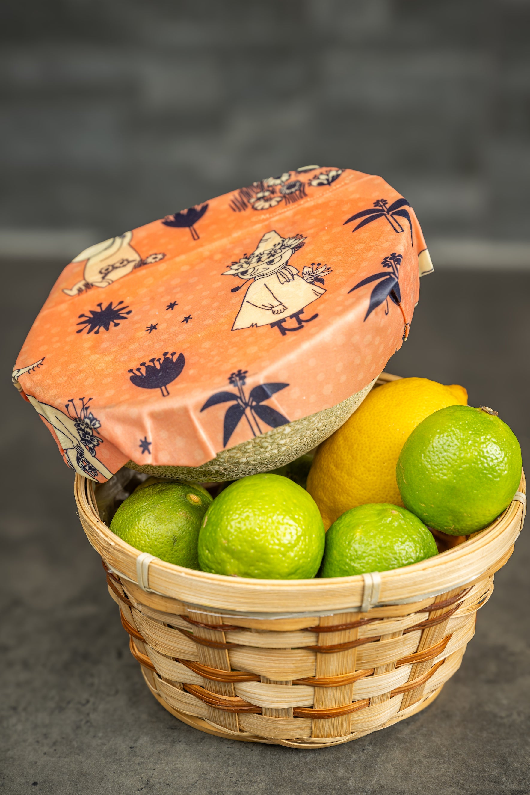 Använd den till frukt, bröd, ost eller som lock på skålar – ett hållbart och vackert alternativ till plastfolie.
